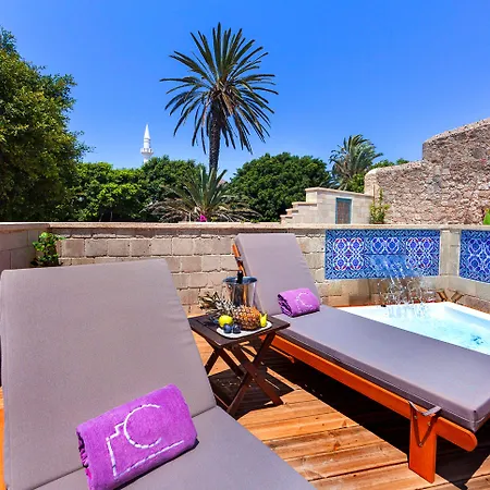 The 4-star In Camera Art Boutique Hotel Rhodes City enjoys a quiet location about a 5-minute walk from Street of the Knights and offers 10 rooms with views of the courtyard. Set in Rhodes Old Town, which is the main attraction of the island, the luxury hotel is quite close to the medieval castle "Palace of the Grand Master of the Knights of Rhodes" and has an outdoor hot tub and a Jacuzzi.